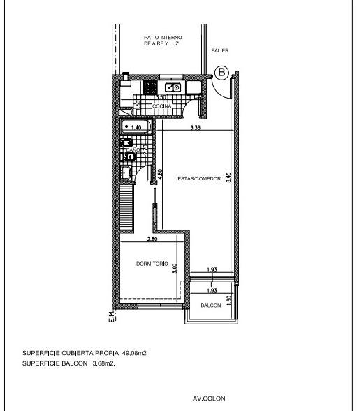 Departamento eléctrico, externo de un dormitorio con balcón ubicado en un octavo piso sobre Av. Colón a metros de La Cañada.