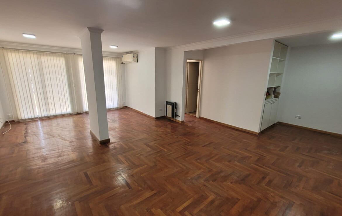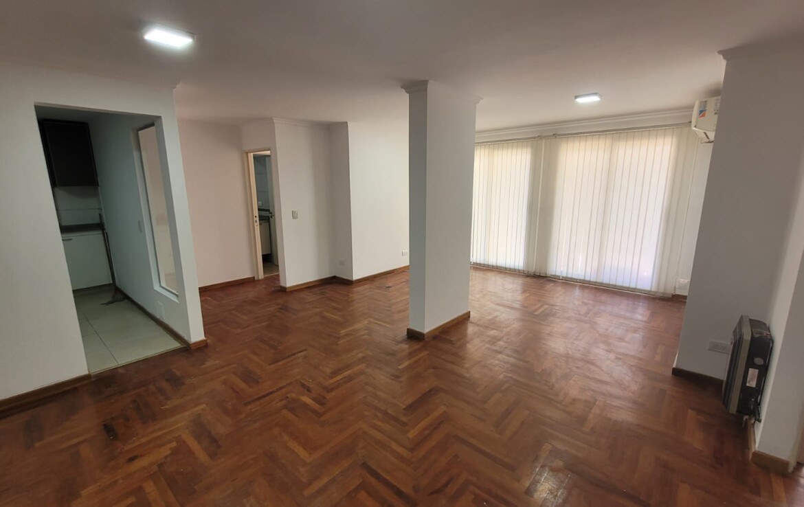 -Living-comedor luminoso con piso de parquet, calefactor y aire acondicionado individual. Salida al balcón