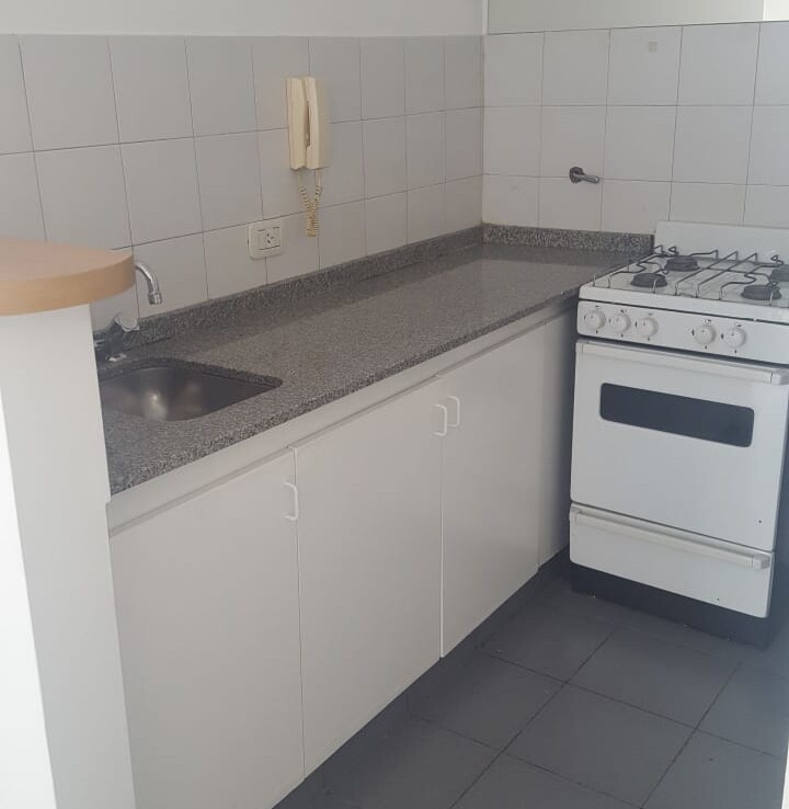 -Cocina integrada tipo kitchenette con mueble de bajo mesada impecable, artefacto de cocina y conexión para lavarropas