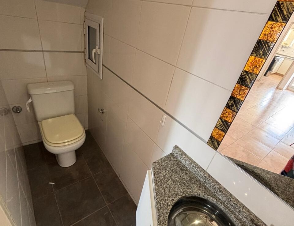 -Living-comedor amplio y luminoso con piso de cerámicos, toilette y salida a uno de los balcones con asador
