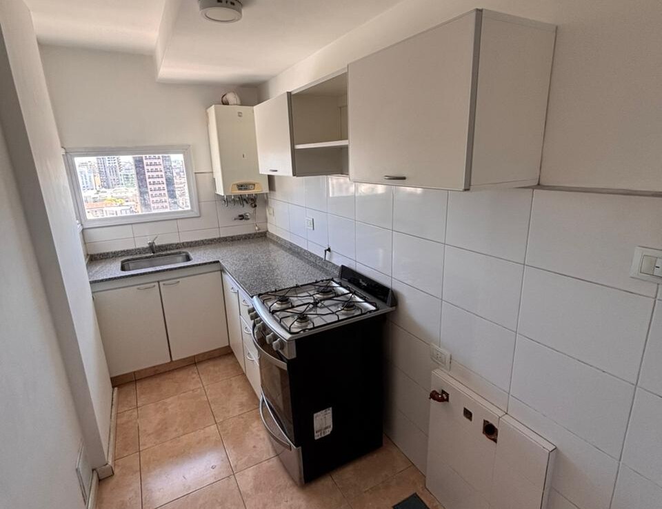 -Cocina separada con mueble bajo mesada y alacena impecables, artefacto de cocina, conexión para lavarropas y ventilación natural