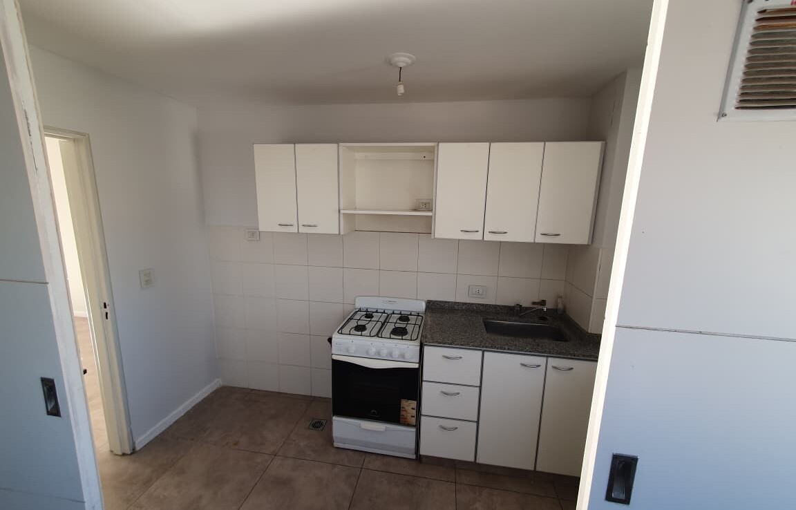 -Cocina separada con mueble de bajo mesada y alacena de melamina blanca impecables, artefacto de cocina, conexión para lavarropas y ventilación natural
