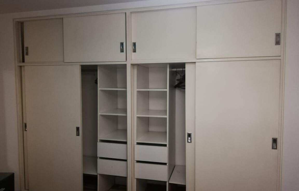 -Dormitorio espacioso con placard doble empotrado con interiores y puertas corredizas impecables