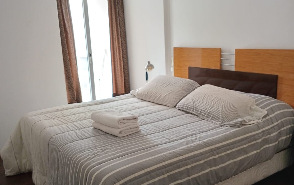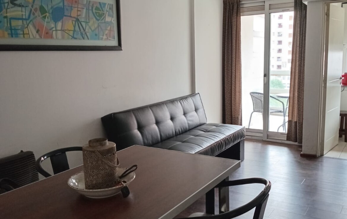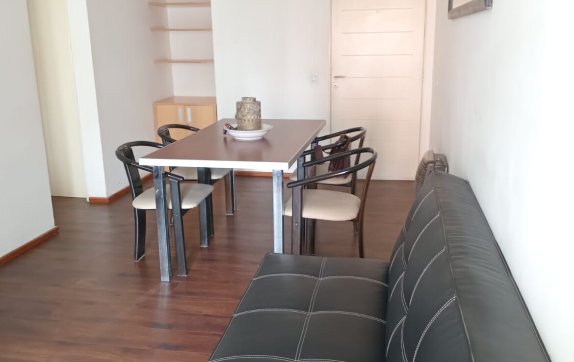 -Living-comedor amplio y luminoso con piso de parquet, juego de comedor, aire acondicionado y calefactor individual. Salida al balcón