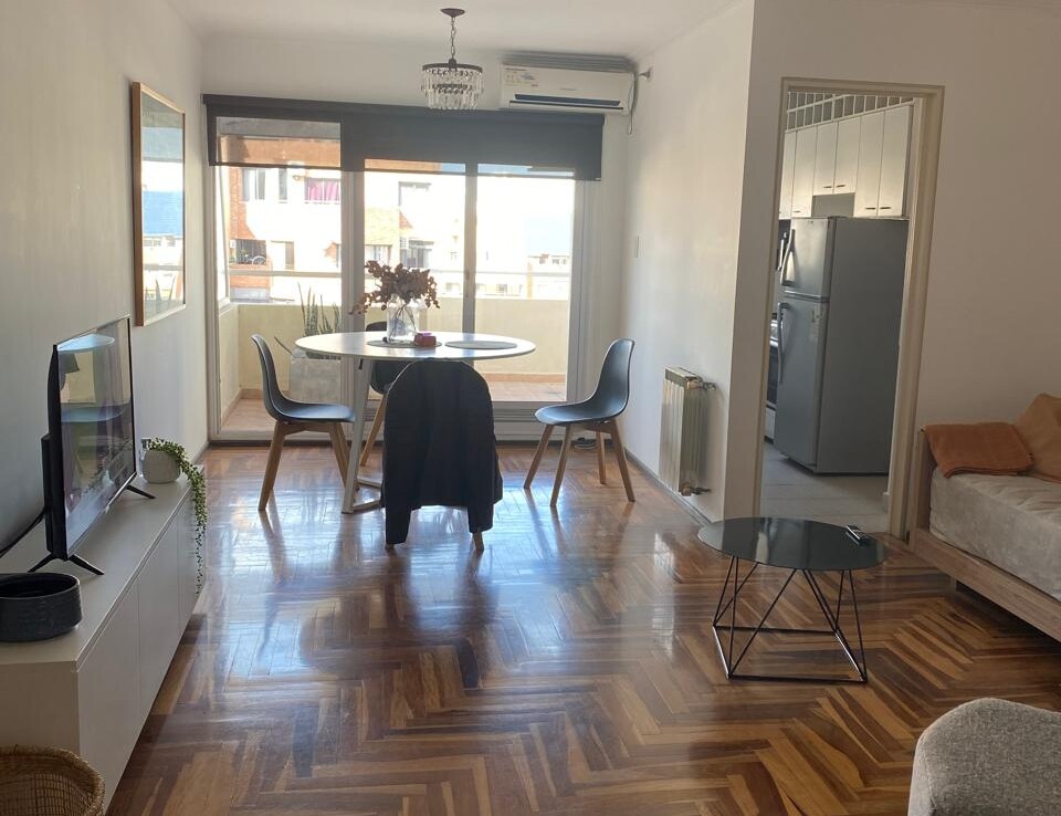 -Living-comedor amplio y luminoso con piso de parquet impecable. Salida al balcón