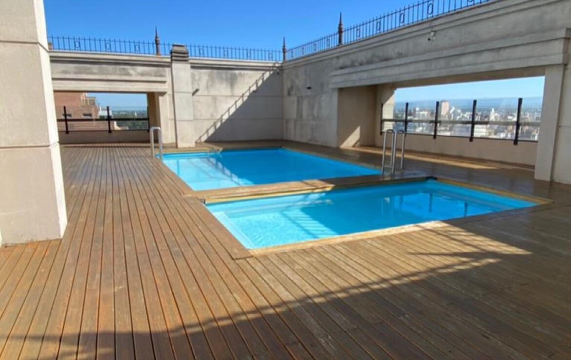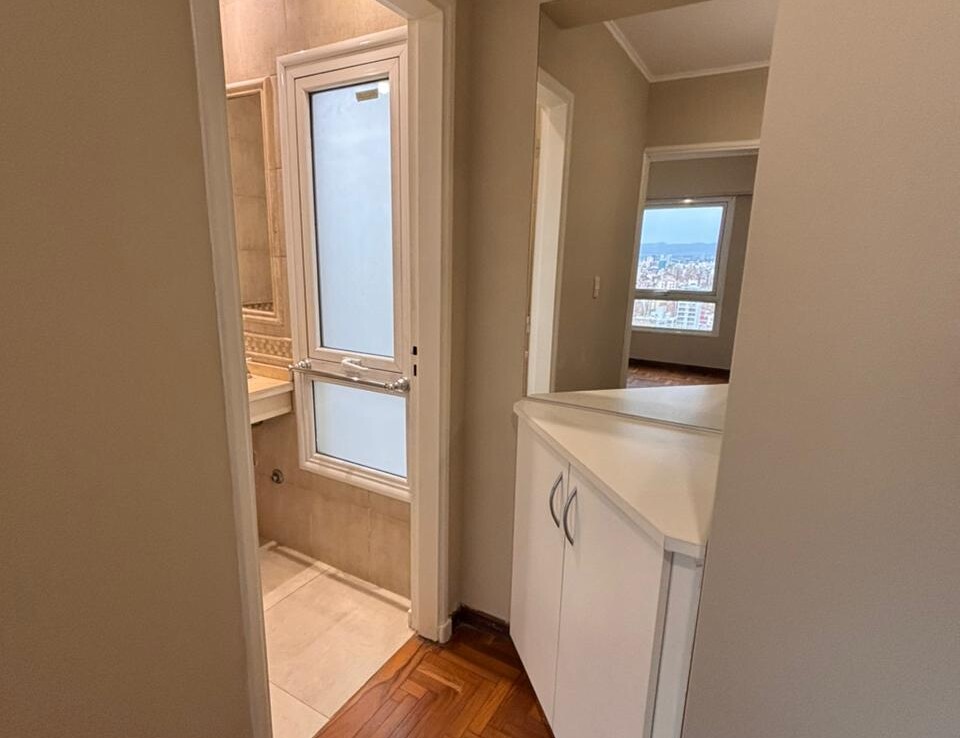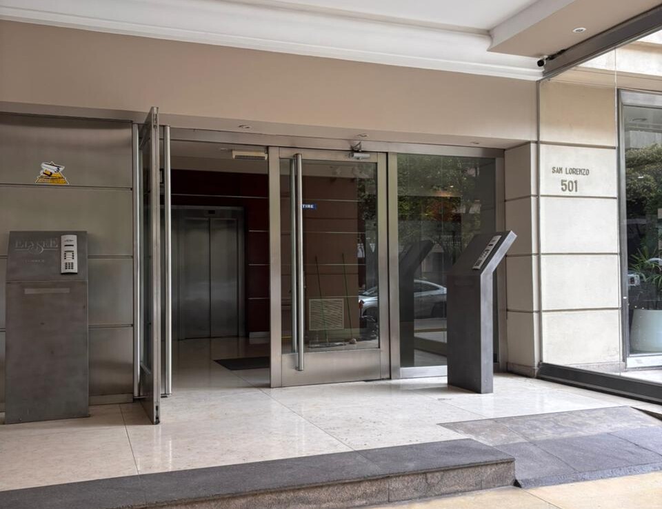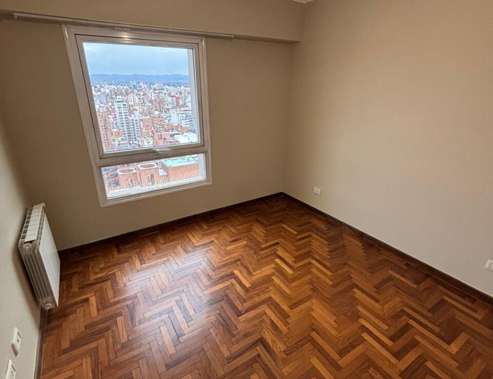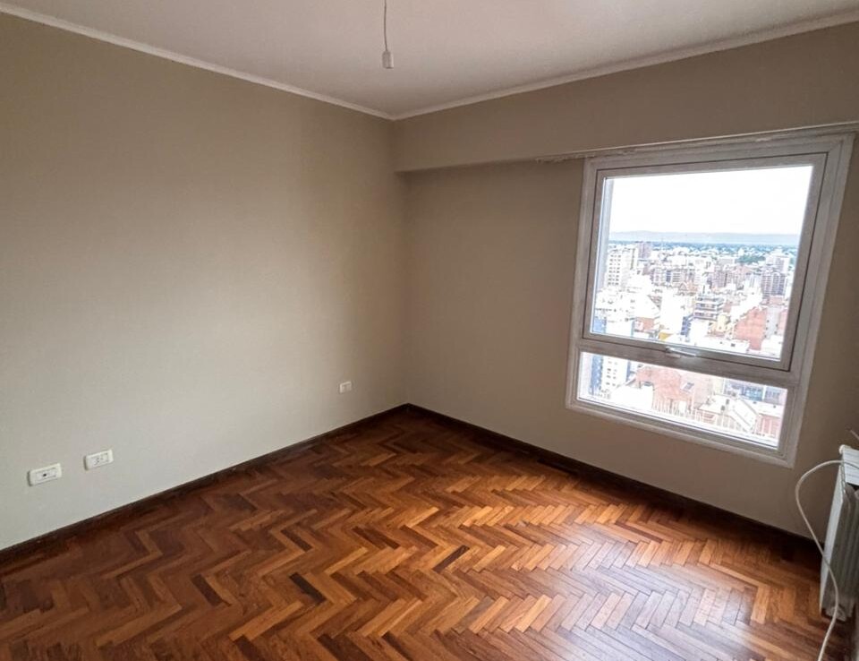 Departamento externo de dos dormitorios con piso de parquet en perfecto estado. Excelente ubicación sobre San Lorenzo y Paraná en la Torre Elysee en el piso 22 con una hermosa vista a la Ciudad.